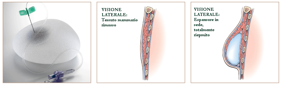 - La possibilità di eseguire questa ricostruzione dipende dalla qualità dei tessuti residuati dalla mastectomia che andranno a coprire la protesi (es. se i tessuti residuati dopo la mastectomia sono compromessi, è meglio posticipare l’inserimento della protesi espandibile)