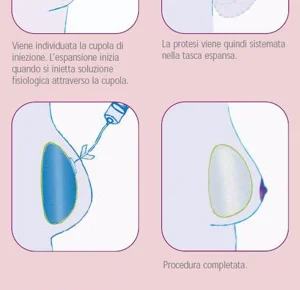 - Si esegue iniettando soluzione fisiologica (acqua sterile) all’interno dell’espansore attraverso con un ago a farfalla di piccole dimensioni.